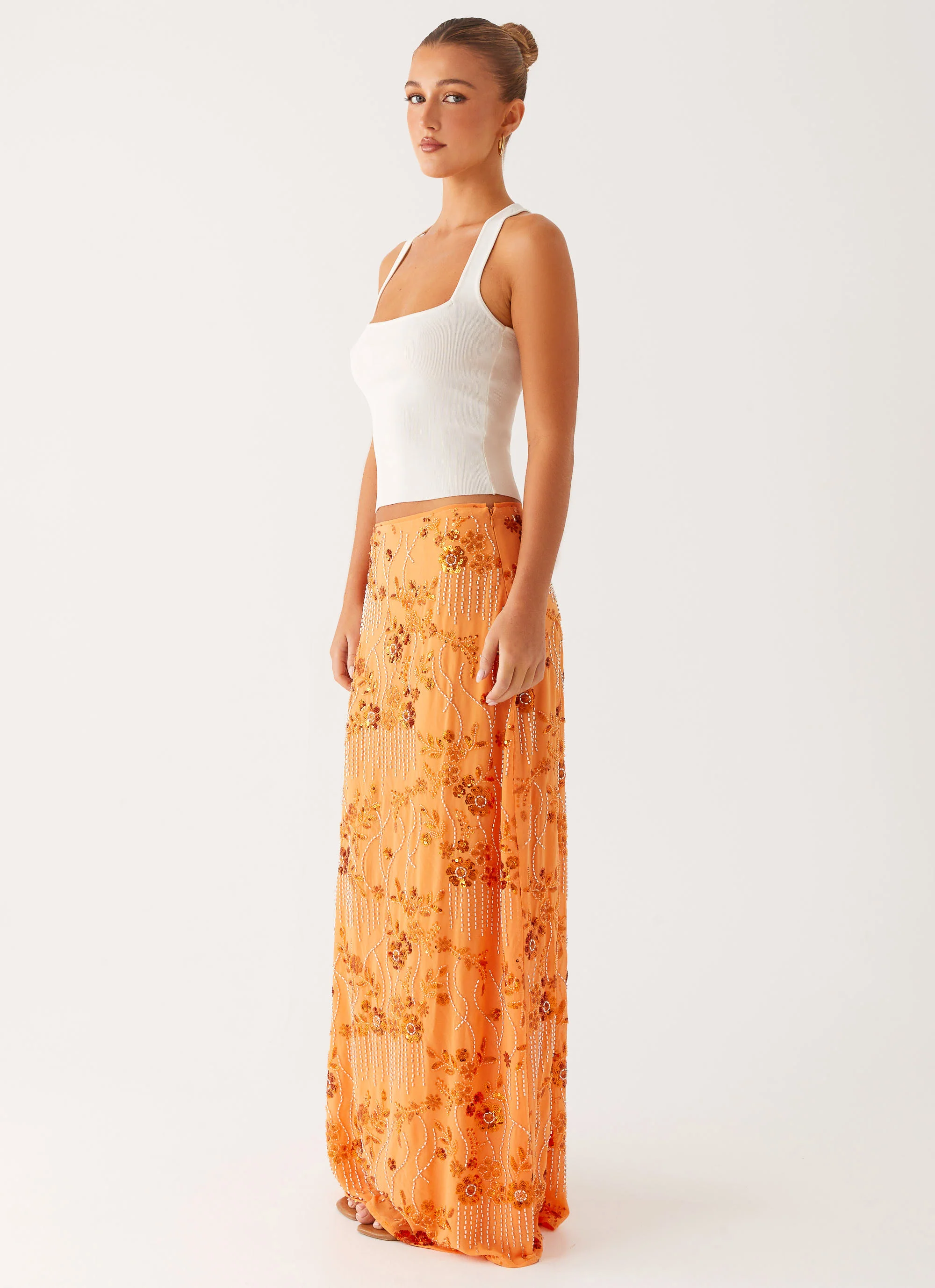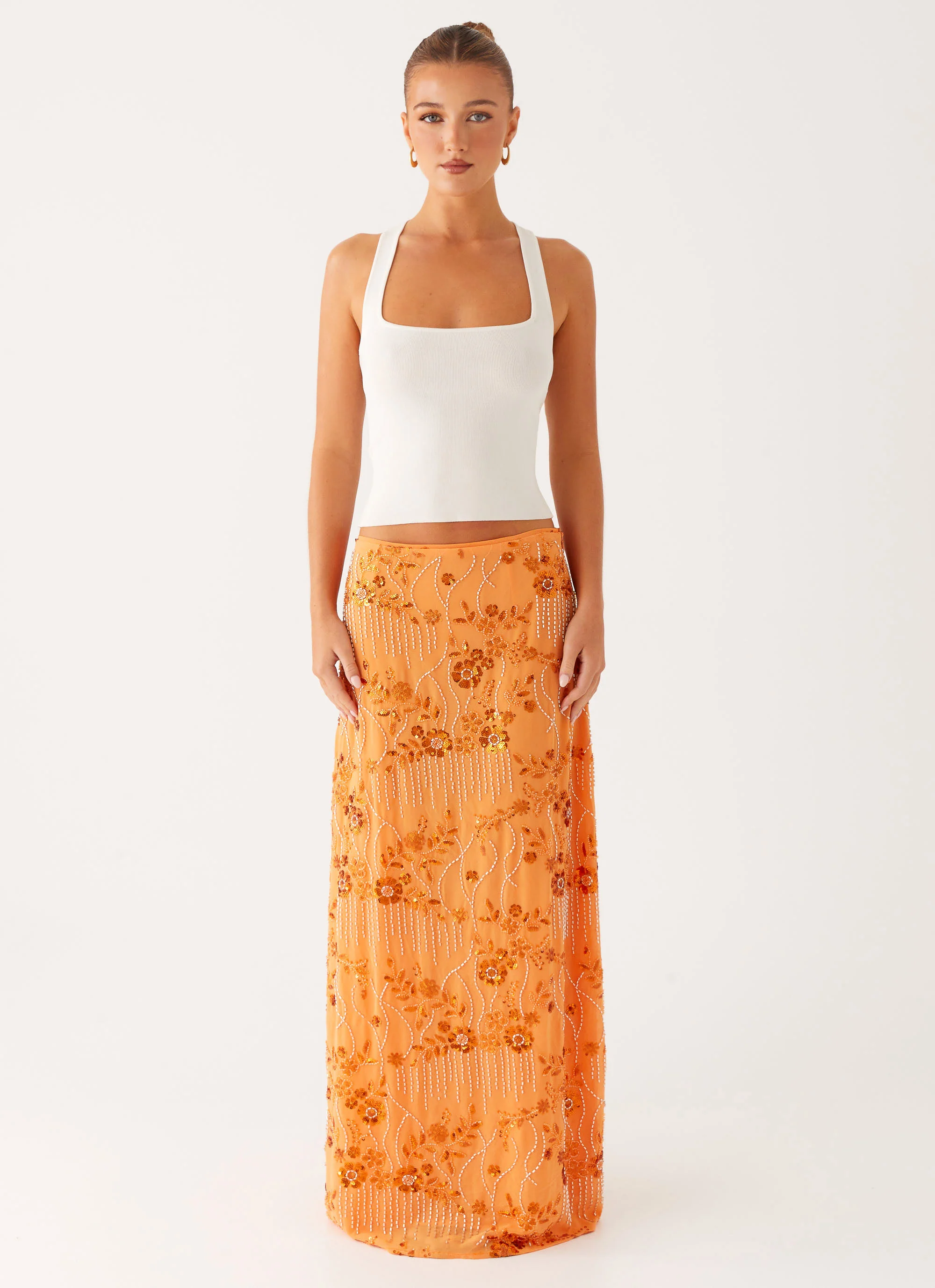 Corinna Low Rise Sequin Maxi Skirt - Orange